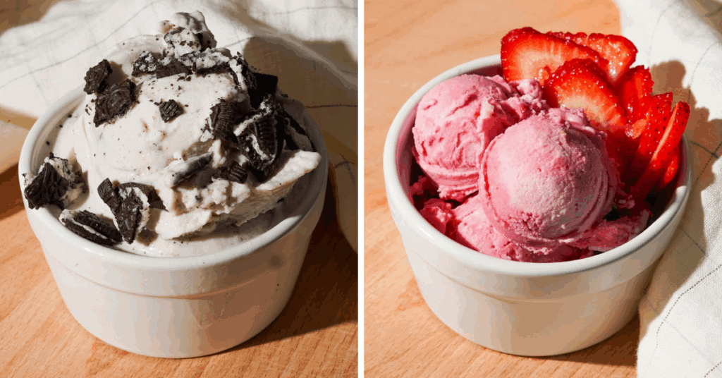 - Change up flavor with mix ins – These ninja creami recipes can be easily customized by changing the flavor of protein powder or the mix ins.
