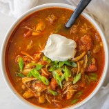 Top your chili with green onion, sour cream, avocado or tortilla chips
