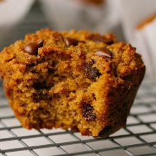 Spiced healthy pumpkin muffins made a little sweeter with chocolate chips.